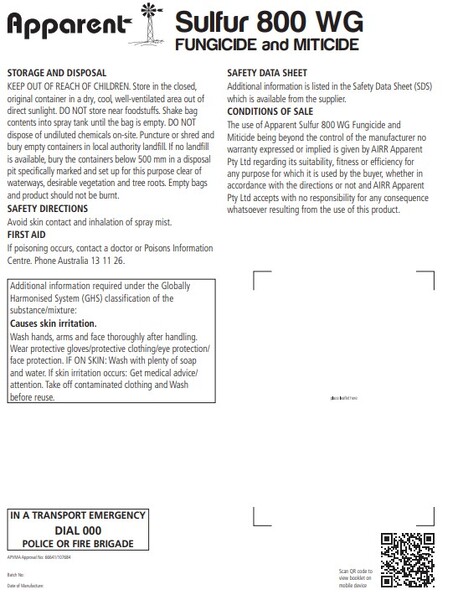 Product Type: Fungicide & Miticide Mode of Action: Group M2 Fungicide Active Ingredient: 800 g/kg Sulfur(s) present as wettable sulphur Formulation: Water Dispersible Granule (WG)