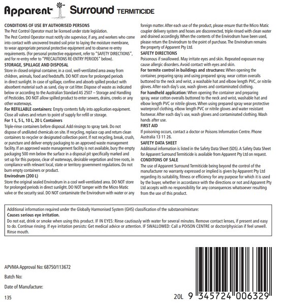 Apparent Surround offers and extensive label ranging from termites to the everyday household pest. It will also control pests in crops such as bananas, citrus, sugar cane, stone fruit, canola, lucerne and wheat.