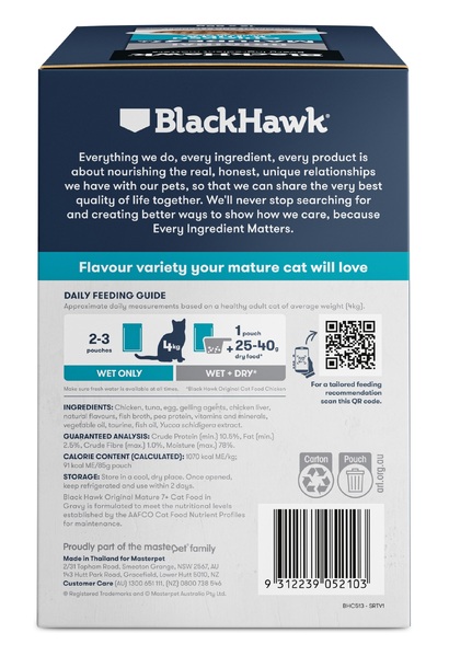 BlackHawk Cat - Mature - Chicken & Tuna in Gravy - 85gm's x 12 pouches