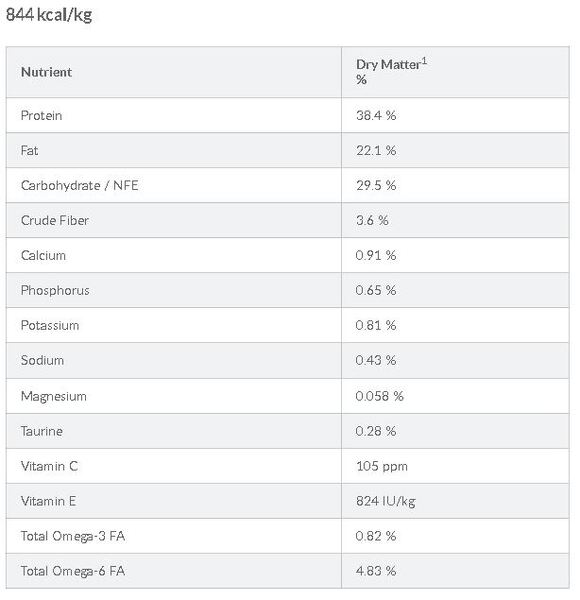 The nutrient in the product after moisture is removed. It is used to make direct comparisons of nutrient profiles with differing moisture contents.