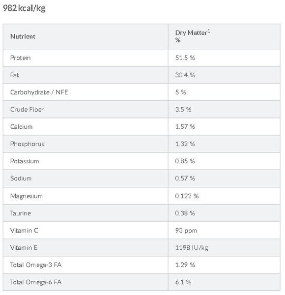 The nutrient in the product after moisture is removed. It is used to make direct comparisons of nutrient profiles with differing moisture contents.