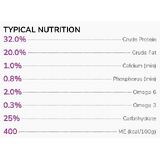 Ingredients: Meat meals (turkey, lamb & chicken), Faba beans, Tallow (beef &/or poultry), Vegetables (including potato, carrot, spinach), Chickpeas, Chicken gravy, Oils (sunflower, flaxseed, fish & emu), Beet pulp, Salt, Essential vitamins & minerals (including calcium, phosphorus, potassium, magnesium, iron, zinc, manganese, copper, iodine, selenium, Vitamins A, D3, E, K, thiamine, riboflavin, niacin, pyridoxine, panothenic acid, folic acid, B12), Chicory extract, Choline chloride, Egg, Yucca echidegera extract, Natural antioxidants (including rosemary), Fruits (apple, blueberry, cranberry, tomato), Alfalfa, Kelp. Made from high quality meat, healthy fats and oils, vitamins and minerals with NO artificial colours or flavours.