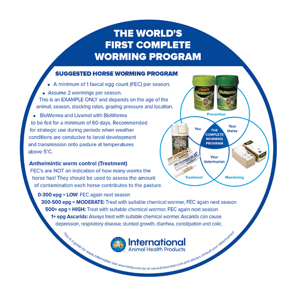 MECWORMA and TAPE ALLWORMER utilises a combination of two horse wormers from different classes, abamectin (macrocyclic lactone) and morantel tartrate (tetrahydropyrimidine). Abamectin and morantel tartrate are both broad spectrum anthelmintics that allow for combined treatment and control of both large and small strongyles, tapeworm, cutaneous onchocerciasis and nematodes including Habronema and Draschia spp. which cause skin lesions (summer sores).