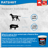 iO Ratshot Blocks BLUE are ready to use baits deadly to mice & rats indoors and out.