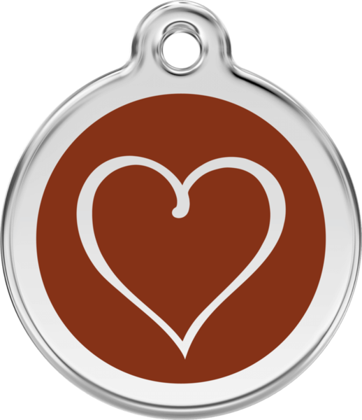 Red Dingo Enamel Tribal Heart Tag - Brown - Lifetime Guarantee - Cat, Dog, Pet ID Tag Engraved