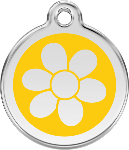 Red Dingo Flower Yellow Tag - Lifetime Guarantee - Cat, Dog, Pet ID Tag Engraved