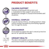 - Calming Support - Contains hydrolysed milk protein and L-tryptophan to help manage cats prone to behaviour changes in unusual environments and situations.