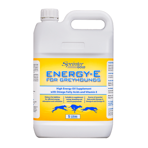 Greyhounds can utilise oils (fats) as a high energy source, even at sprint race speed, as compared to other sprint athletes. ENERGY-E™ has 3 important benefits when added to a greyhounds diet.