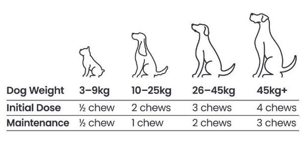 Feed chew(s) daily as per feeding guide below, or as recommended by your animal health professional.